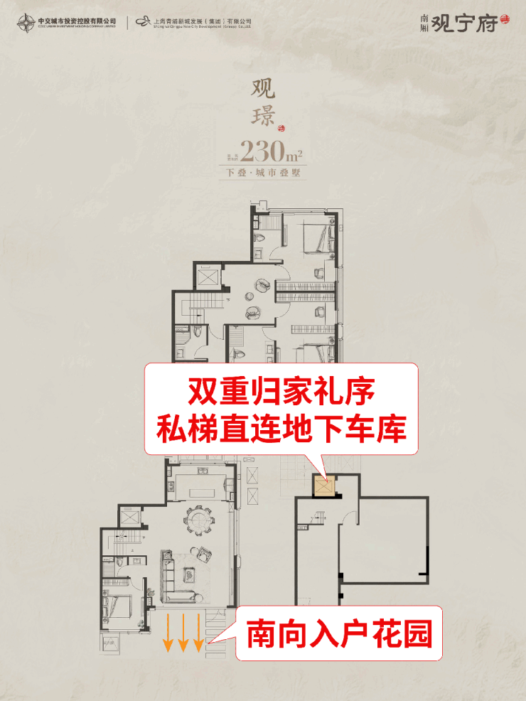 合院+叠墅的纯墅区,南北双会所,独立入户门庭,专属独立电梯入户,有天有地,户户有地下室,高附加空间,大尺度墅居,圈层纯粹……