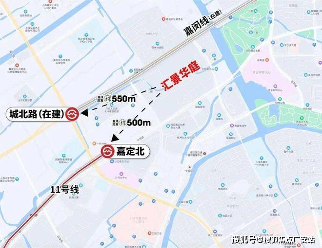 汇景华庭直线距离11号线嘉定北站约500米,很适合普陀、徐汇、长宁通勤的购房者。