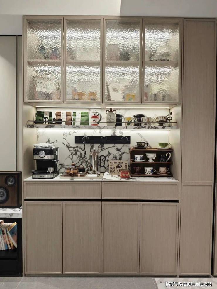 本次还增加了非常实用的零食柜和餐边柜,未来业主在这里可以作为自己的一个日咖夜酒区域。