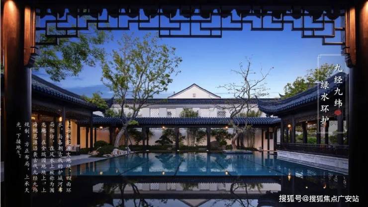 园内布局五进制南北主轴、以及“双龙戏水”格局的双水街,巷道联通,设七大景观组团,形成“一环、两轴、七境”布局。175席中式园宅,依巷分布南北,横平竖直,秩序井然。