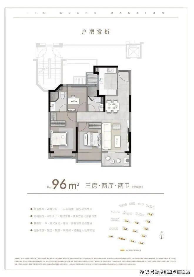 建面约85-96㎡ 3房户型