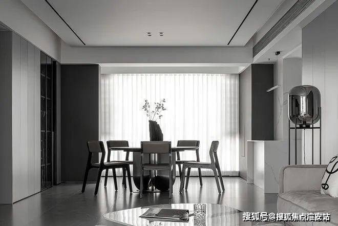 餐厨空间也采用同样的设计手法,增加内嵌式储物空间,让开放式厨房进一步宽敞,许多物品也有了摆放的空间。落地窗提高用餐愉悦感。