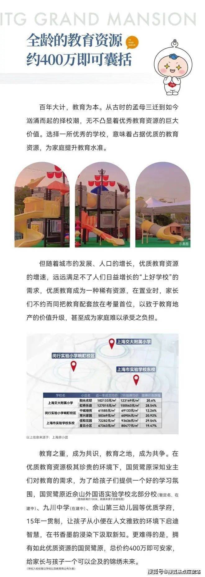 教育方面:边有佘山外国语学校、协和双语学校优质学府、宋庆龄学校、松江区北干山小学、青浦北菘中学、九川中学(规划中)等优质教育资源环伺(新房不确定对口学校,具体以官方宣布为准)