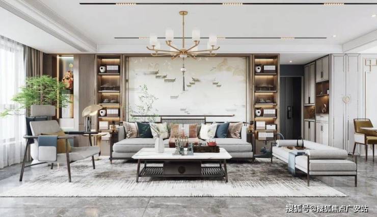 ①与传统中式不同,新中式的配色淡雅,更加清晰高级。