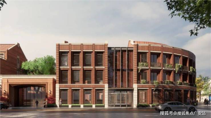 项目将海派别墅与新复古主义进行融合,沿街立面汲取原地块建筑风貌,采用扇形圆滑的转角形态,形成独特的手风琴样式。传统红砖的运用,形成材质上的时空对话,赋予建筑深厚的文化底蕴与现代美感,同时呼应周边历史建筑群以及杨浦滨江的工业历史。