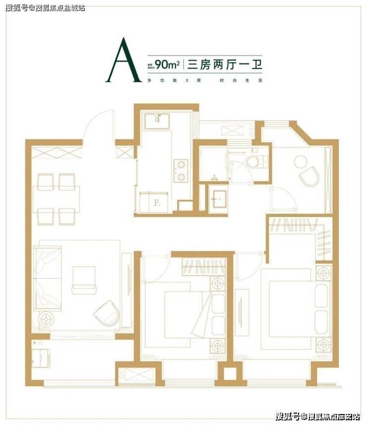 约90㎡3房2厅1卫样板间照: