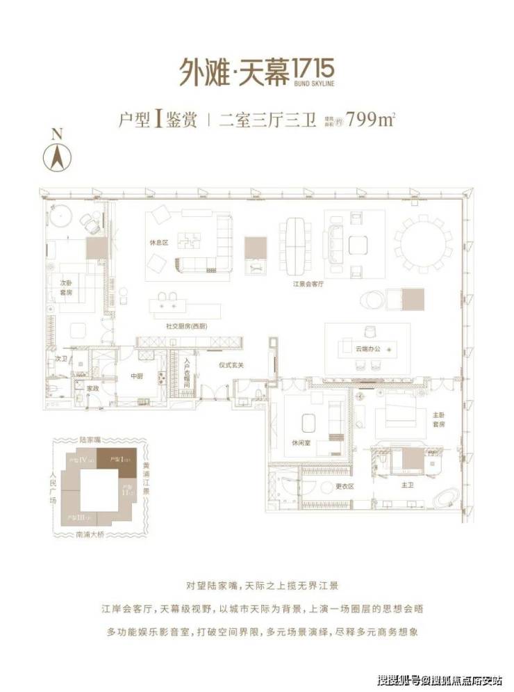 绿地·外滩天际,在外滩地标绿地外滩中心T1#300m超高层楼栋,标准层高约4.5m,主力户型面积约724-799㎡,以一种塔尖群体向往的融合式生活方式,诠释外滩滨江恒产的价值高度。于此,以王者视角,俯揽黄浦江,对望陆家嘴,尽享上海城市之曜。