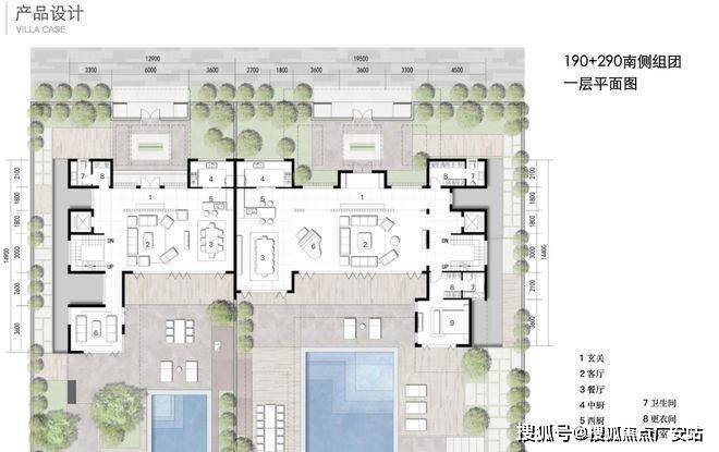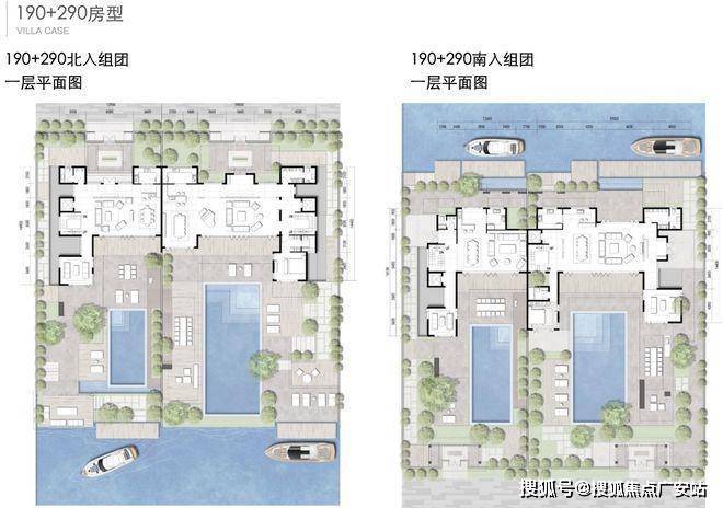 北入户的190+290房型,一层朝南直面庭院和泳池,如果配上整扇的落地玻璃移门......