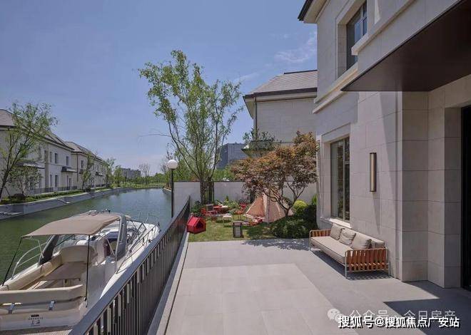 每一排别墅前都有一条渠道,引入水系,自带水岸码头,可以停靠私家游艇!
