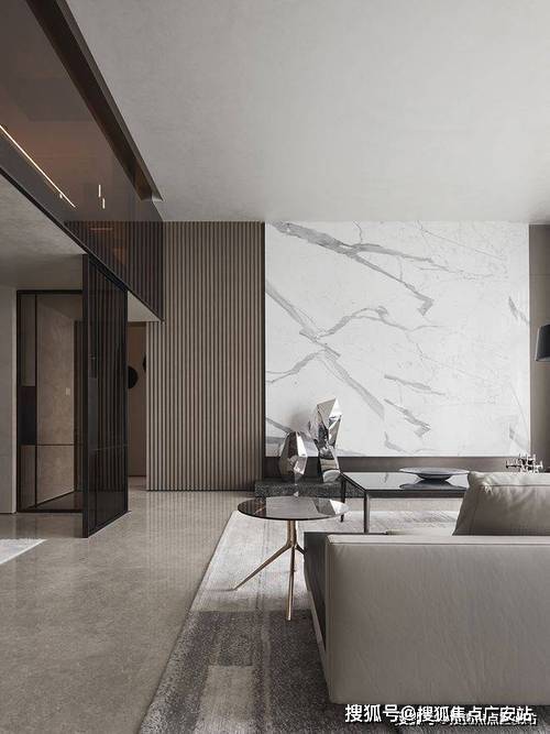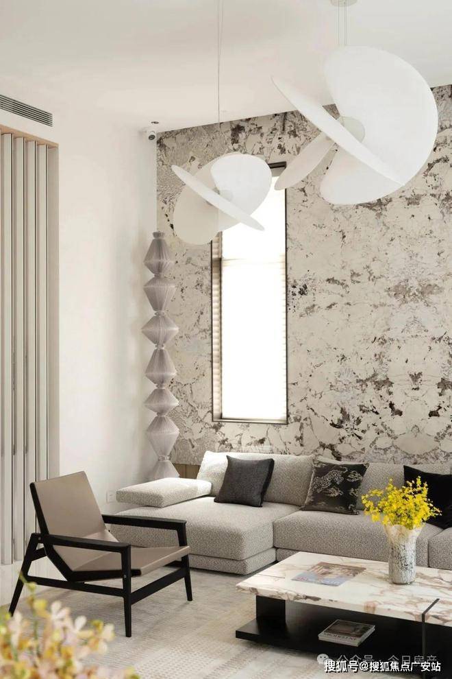 外立面采用沉香米黄干挂石材、陶瓦屋顶及铜顶装饰,融合新古典主义与现代极简风格