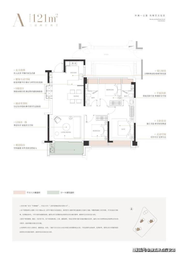 建面约121㎡3房: