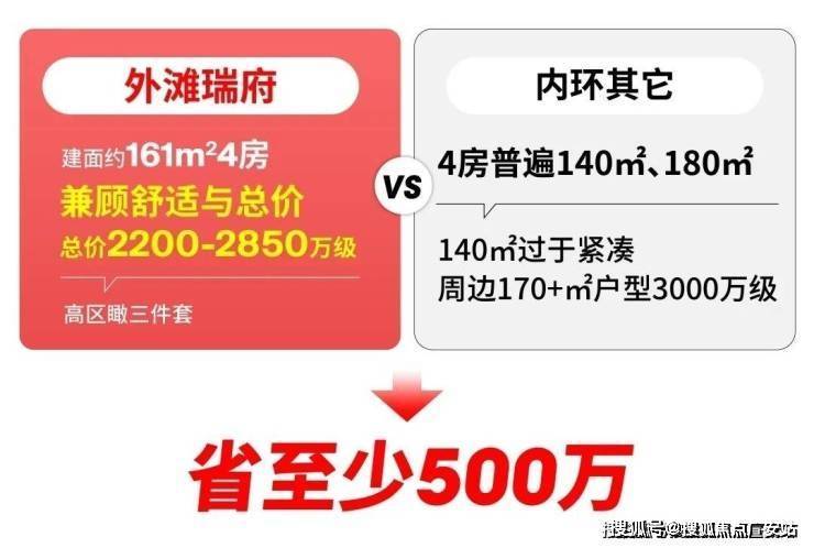 事实上周边170+㎡4房新房总价在3000万级,外滩瑞府161㎡4房总价省500万都不止。