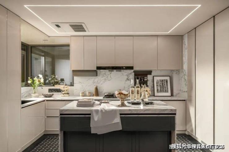 另外,在整体动静分区的格局下,U型厨房不只是单纯的烹饪场域,更融入“社交属性”,让人们在烹饪的同时,也能与客厅的家人交流。