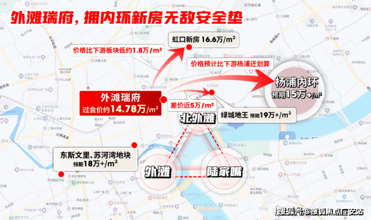 外滩瑞府离外滩更近,绿城地王位于北外滩,两者直线距离不过约1公里,但新房差价或4-5万/㎡。您认为品质差不多的情况下,未来差价有这么大?