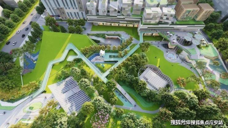 展现出首层聚落-公园绿岭-立体街区