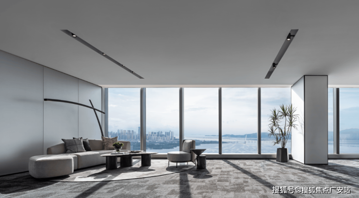 半围合的休闲区作为办公空间动态体验的一个重要节点区域,搭配舒适内敛的意式沙发,营造轻松、舒适的空间体验,作为湾区高端商务会客厅,这里不仅是办公的场所,这里是城市的缩影。