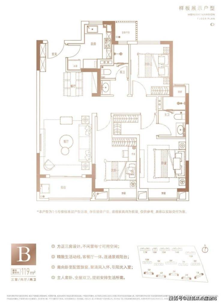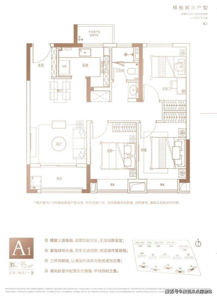 既有舒适、功能兼具的三房,也有大尺度改善的四房,即将首开的面积约95㎡、119㎡、142㎡,满足刚改、再改不同类型的面积要求。