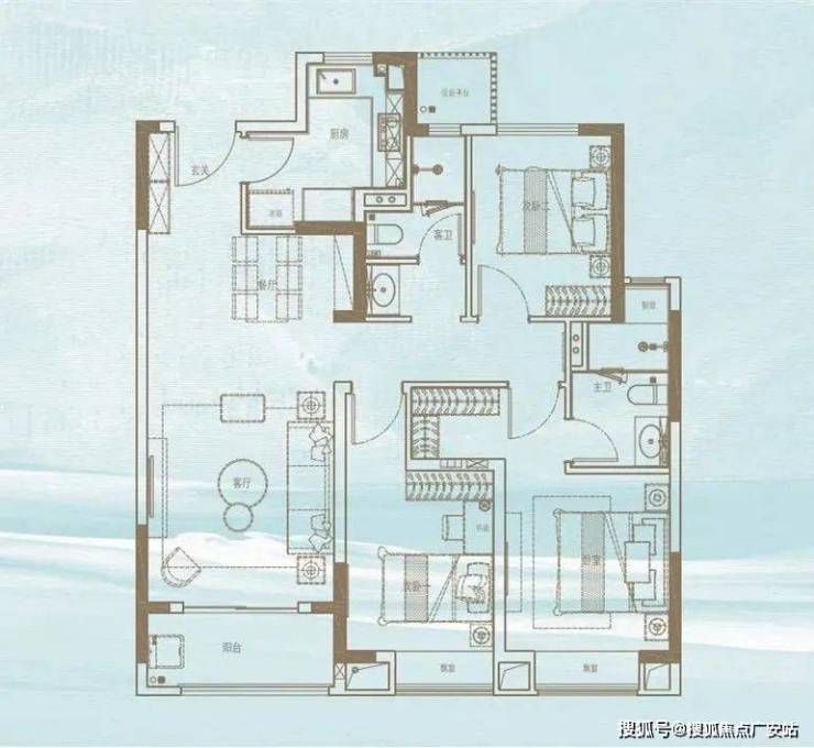 建面约119平三房两厅两卫