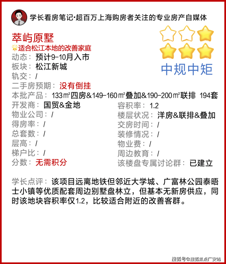 最新消息,松江新城「萃屿原墅」案名发布!预计推建面约133㎡四房&149-160㎡叠加&190-200㎡联排!