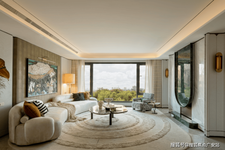 私密场域依旧保持静谧,黑白色基础上搭配了更多的色彩,例如深棕、浅紫等,艺术品的衬托深邃迷人,热络了家的氛围。