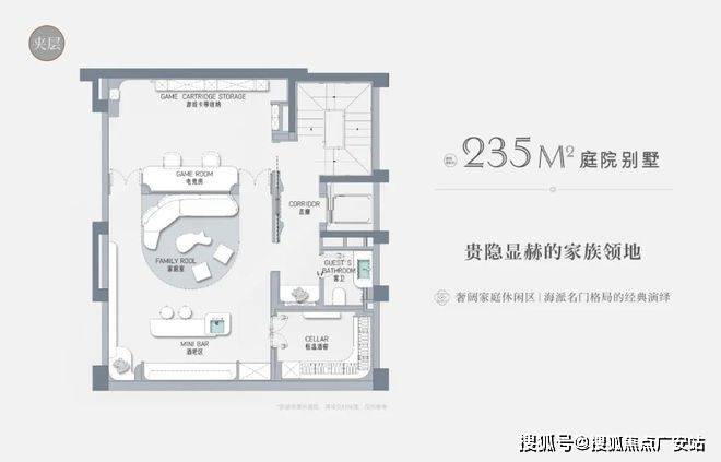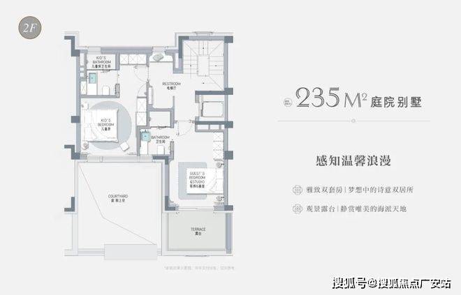 以建面约235㎡的庭院别墅样板房为例,户型附赠地下室、庭院、露台、阁楼空间,附赠面积达到户型总建面的60%左右,市场上少之又少!