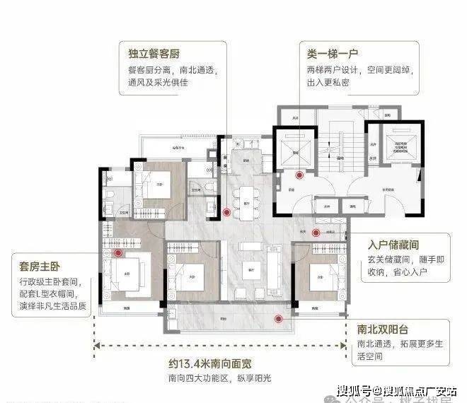 约13.4米南向大面宽,提升采光与通透感。