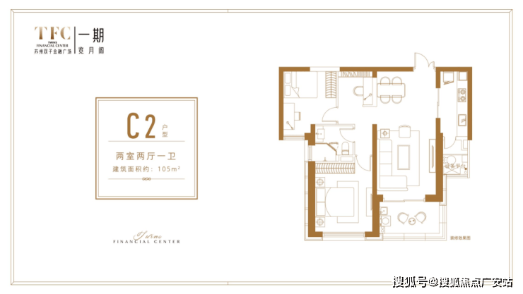 105㎡两居:方正布局,双阳台设计,得房率76-78%