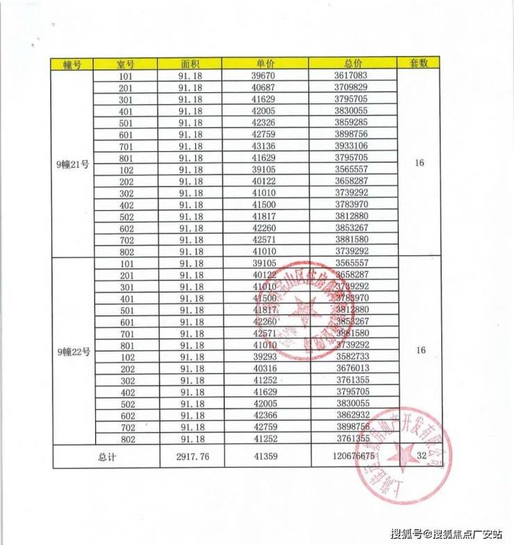 上期一房一价表: