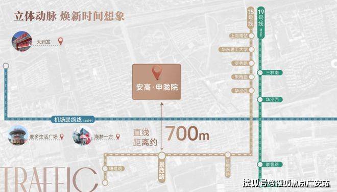 纵横交错的轨交出行路网将2大机场、3大高铁站、多个千亿产业区、以及徐家汇、徐汇滨江以及前滩等城市大型CBD高效串联。