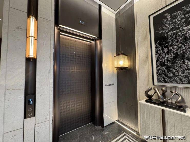 进入单元楼,室内公区更是全石材背景,全金属吊顶,全地面拼花;墙面是意大利的贝金米黄,地面选择的是意大利布诺灰和丝绸之路,为海派拼花点缀,就连电梯轿厢门都带着西派海上独有的logo拼花。