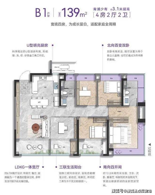 而且通过建筑的剪刀墙归边设计,可以衍生出多种户型方案,打造更匹配家庭需求的可变空间。