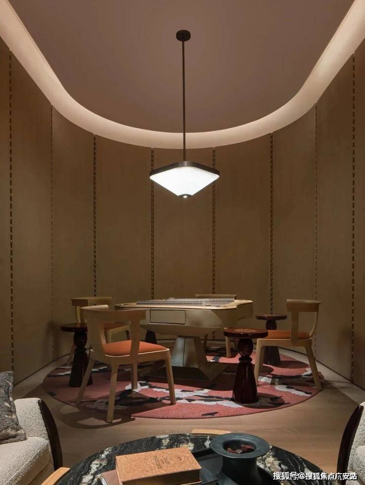 漆砚260㎡户型:户型参考漆砚制作方式,以“玉德”显质地,以“金声”隐赞誉,主卧吊顶还原砚台之形,以漆砚般闪耀琢序空间。