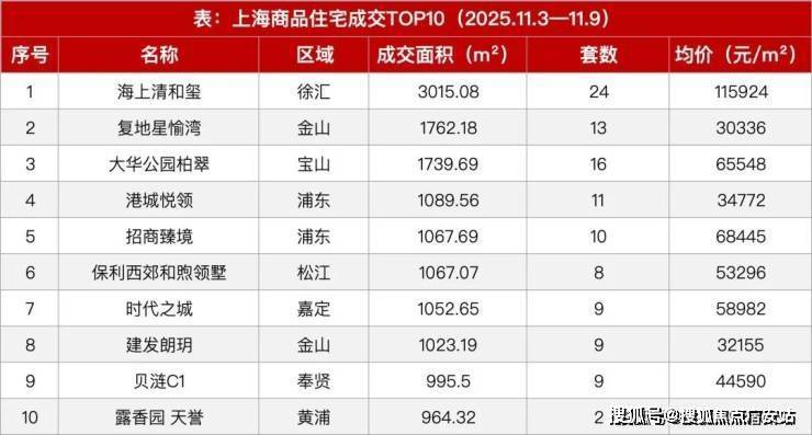 其中,徐汇区长桥板块的海上清和玺表现最为突出,上周网签24套,成交面积3015.08平方米,网签均价115924元/平方米。该项目于10月24日开盘,推出161套建面约112-120平方米房源。