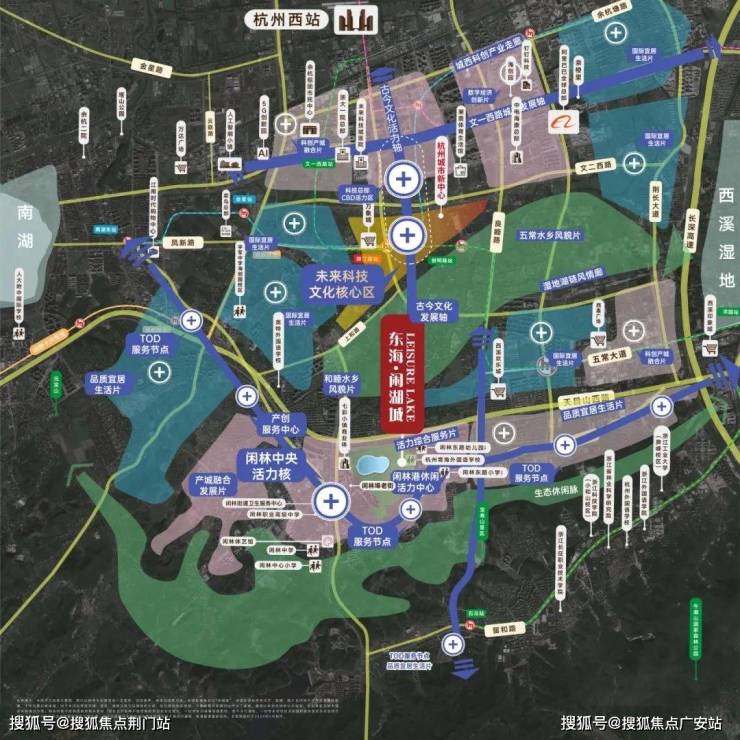 未来科技城被誉为中国经济引擎,杭州新中心,区域内注册企业涉及人工智能、芯片、数字经济、生物医药等高精尖科技产业。代表性的有阿里巴巴全球总部、菜鸟总部、之江实验室、海康威视等等。吸引顶尖人才集聚于此。闲湖城距离杭州未来科技城公共中心直线距离约3.5公里。