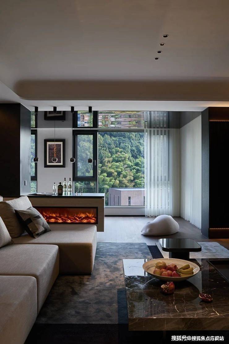 在色彩的海洋中,黑色以其独特的魅力吸引着我们,它深邃、纯粹、低调……大面积的落地窗将视野开阔到极致,别具匠心的现代式壁炉,既带来浓郁的复古感,又不失现代设计的简洁利落.