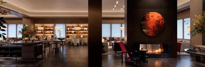 更有面积超大的会所空间,像是行政酒廊与图书馆的复合体,它不是一览无遗的辽阔,而是隔而不离的丰饶。