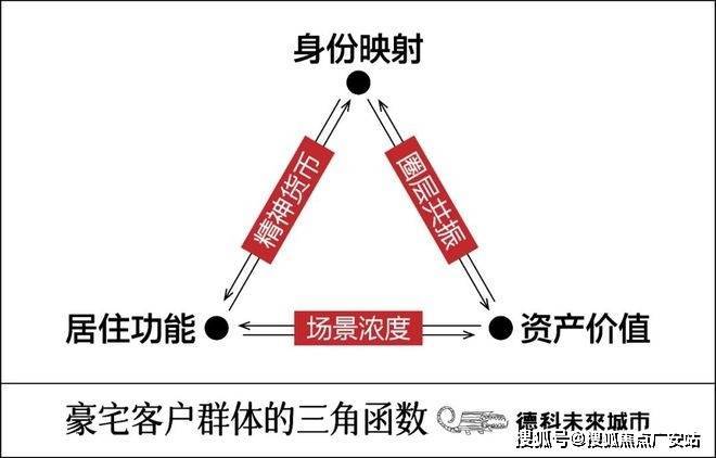 现在我们来稍微总结一下,触发豪宅客户群体购房的心理机制。实际上,「身份映射」「居住功能」与「资产价值」这三项诉求,是紧密循环的——「身份映射」所依赖的精神货币,主要来源于「居住功能」的场景浓度;「身份映射」越强大,就越能凝聚成一个纯粹的圈层,进而又会让「资产价值」更稳固。