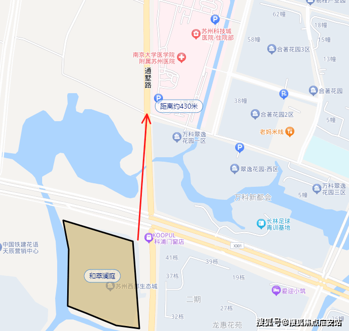 项目距离科技城医院售楼处电话☎:400-998-7894✔✔(南京大学医学院附属苏州医院)只有430米,按照3甲医院设计打造,科技城最好的医院。