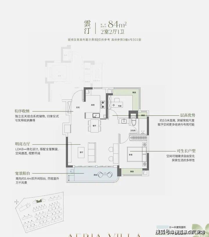 约9.8米南向面宽,配以超大尺度跑道式阳台,让室内外交融共生。