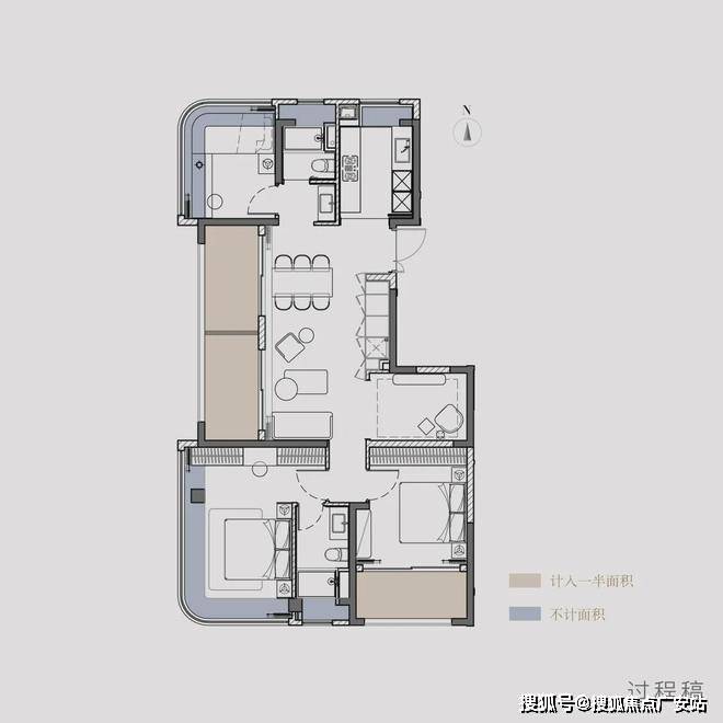 阳台+飘窗算下来,约108㎡户型的实得率达到了惊人的约87%,实得面积约94㎡!