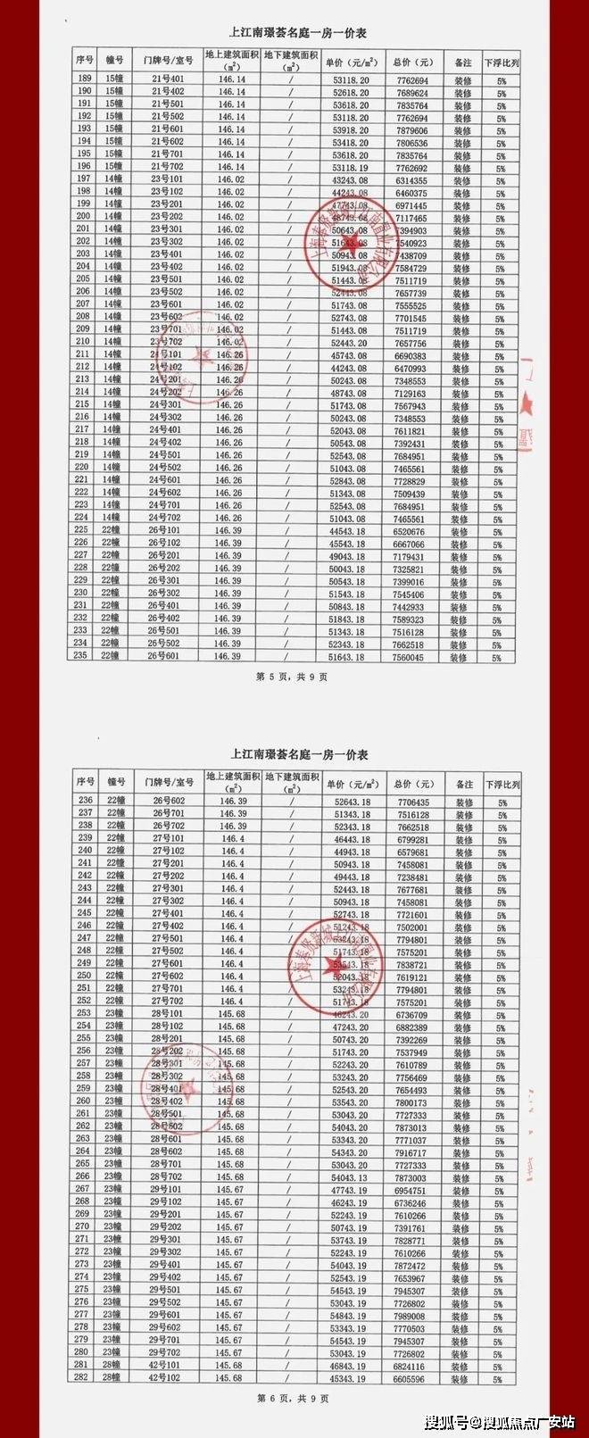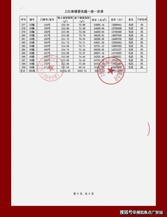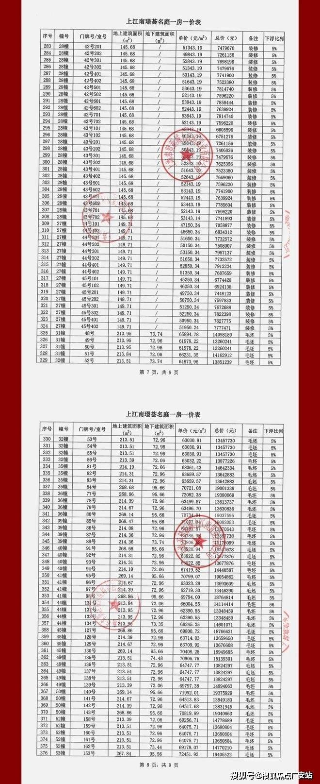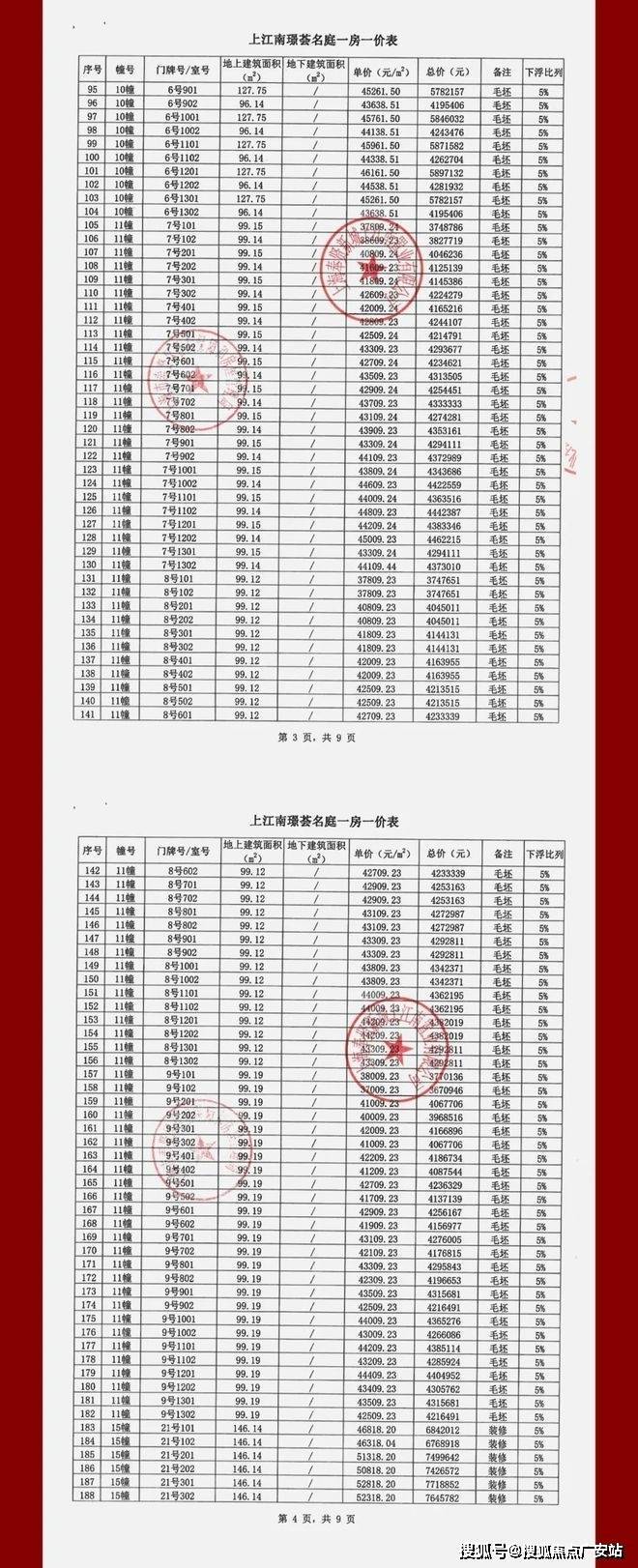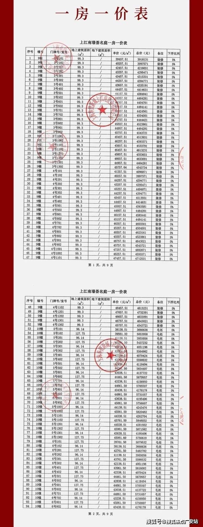 上江南璟荟名庭一房一价表: