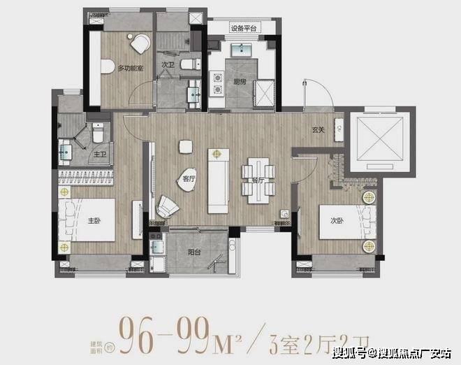 几乎没有见到过!不足百平的3房竟能做到如此尺度!