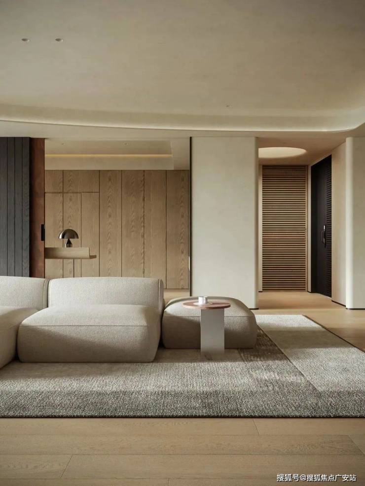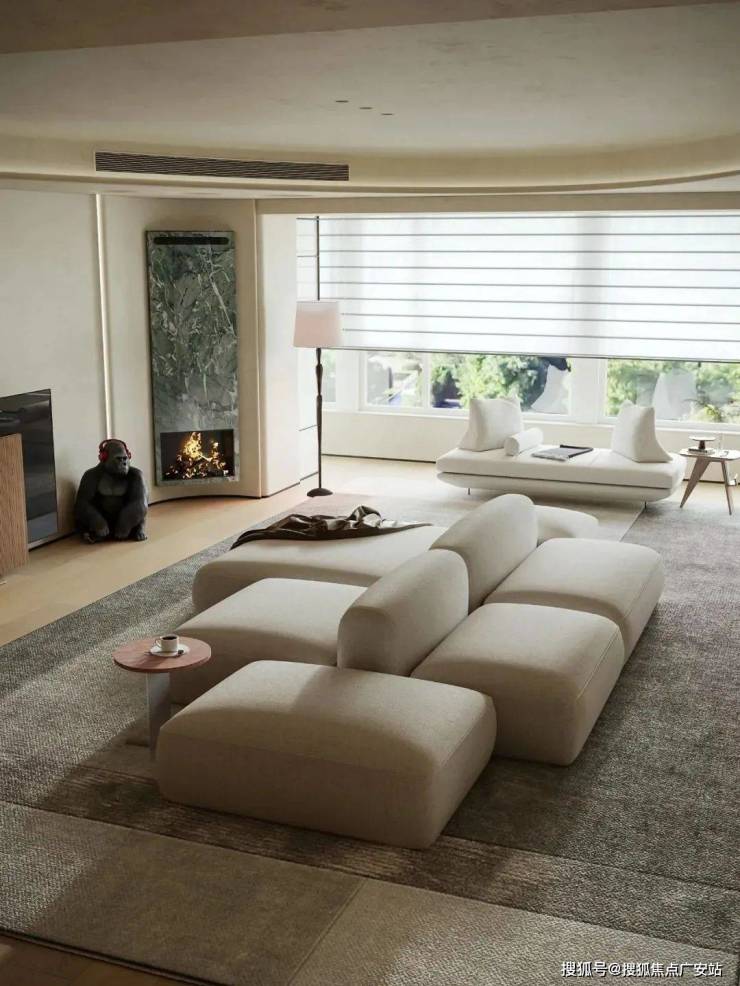 为营造自由通透的空间感,利用软装辅助流畅的生活动线,米灰色低饱和模块沙发,以多面体块拼接造型,灵动适配不同视角与布局,成为家庭的主要活动区域。