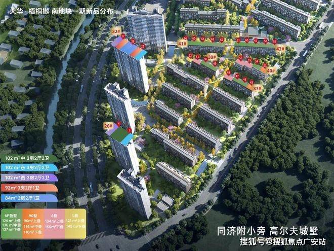 建筑面积约84-101㎡瞰景高层,方正格局,正向朝南,采光性和通风性都非常优秀;动静分离、干湿分离更是不在话下;而且推窗便能看见高尔夫绿洲,视野极为优越!