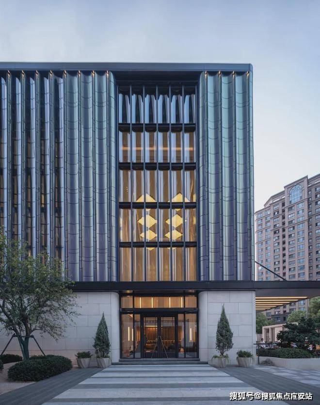来到项目会所,就被其流光幻彩铝板的外立面所吸引。不同角度有不同颜色呈现,造价昂贵。大堂的玻璃也很吸睛,用的半钢化夹胶反弯弧玻璃,半径仅为约600mm,施工难度大、成本高!