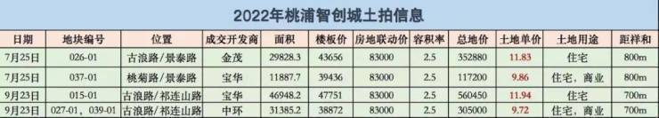 现在,正是桃浦智创城版块厚积薄发的兑现时刻!2022年桃浦智创城版块两次土拍供应了4块住宅用地,集中在祥和别墅项目西侧700-800米范围,均被多家大型房企争相竞拍,溢价率高达9.46%。特别是两块纯住宅用地均以近12万的土地单价成交。桃浦板块的土地价值已经显现,未来升值潜力巨大!