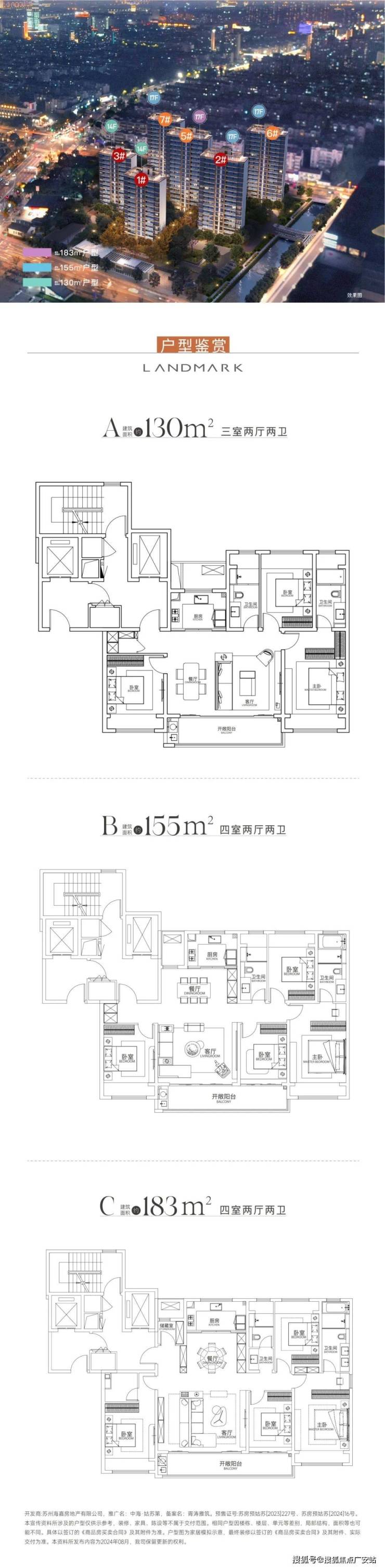 配置户型:约130㎡、约155㎡、约183㎡