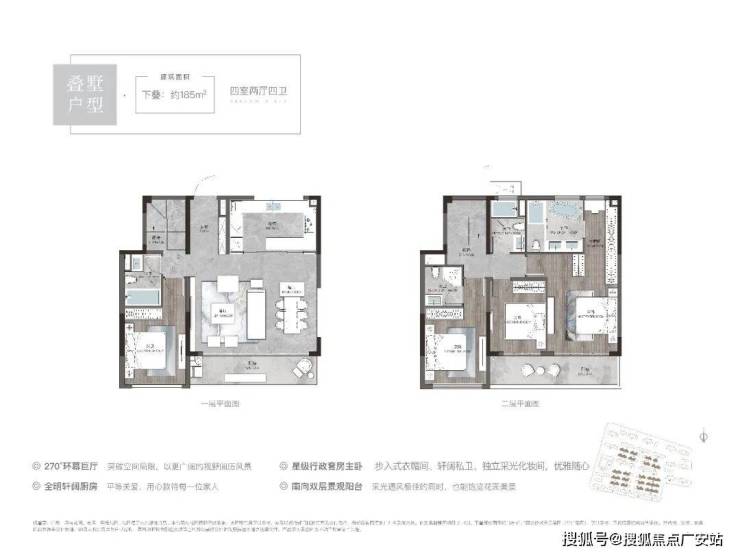 作为全新四代墅区,溪前雅居定位改善,整盘打造了大量的叠墅产品,户型起步建面约170㎡,最大做到了约235㎡,这样的大户型社区,可以最大程度保证圈层的纯粹性。