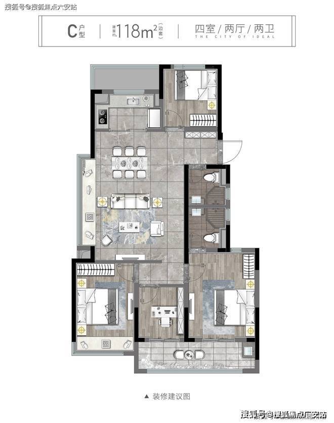 -**建面120㎡**:四房全明格局,主卧套房+观景飘窗,三代同堂从容无忧.