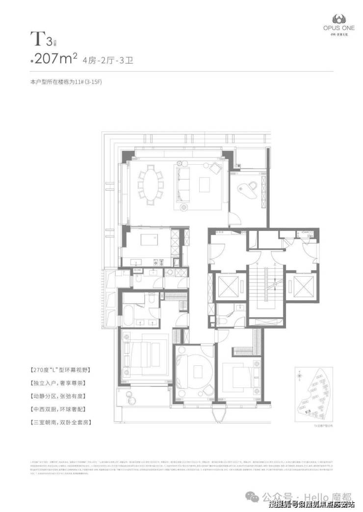 •户型面积:190-207㎡大户型,3-4房设计,满足高端需求